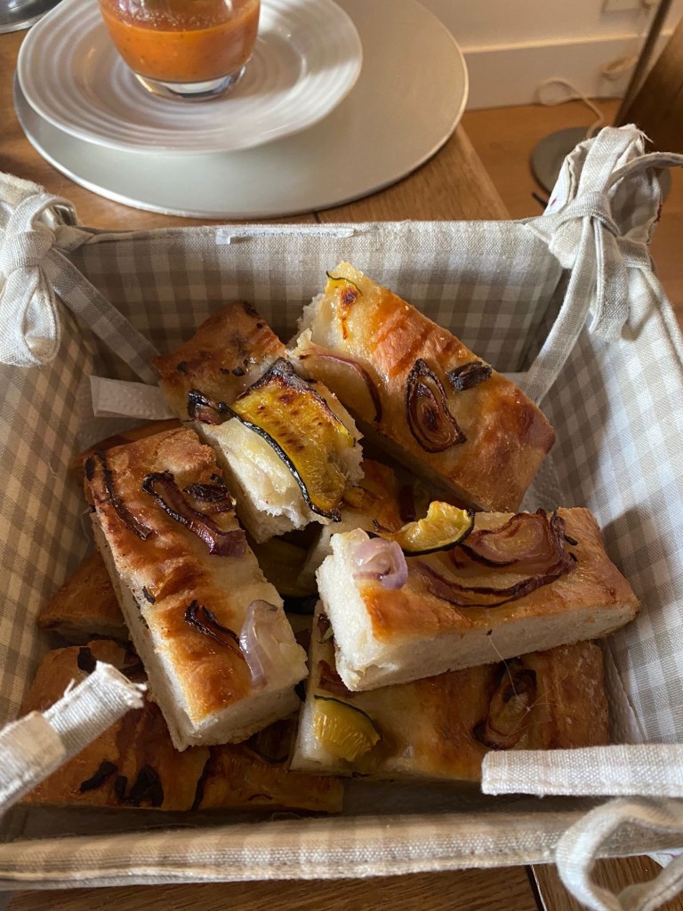 Rhubarb, courgette focaccia